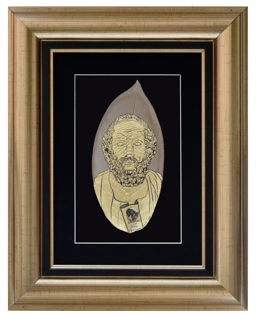 Difenbahya yaprağının üzerine işlenen 49 minyatürden oluşan "Yapraklarda Troya Efsanesi" sergisi.